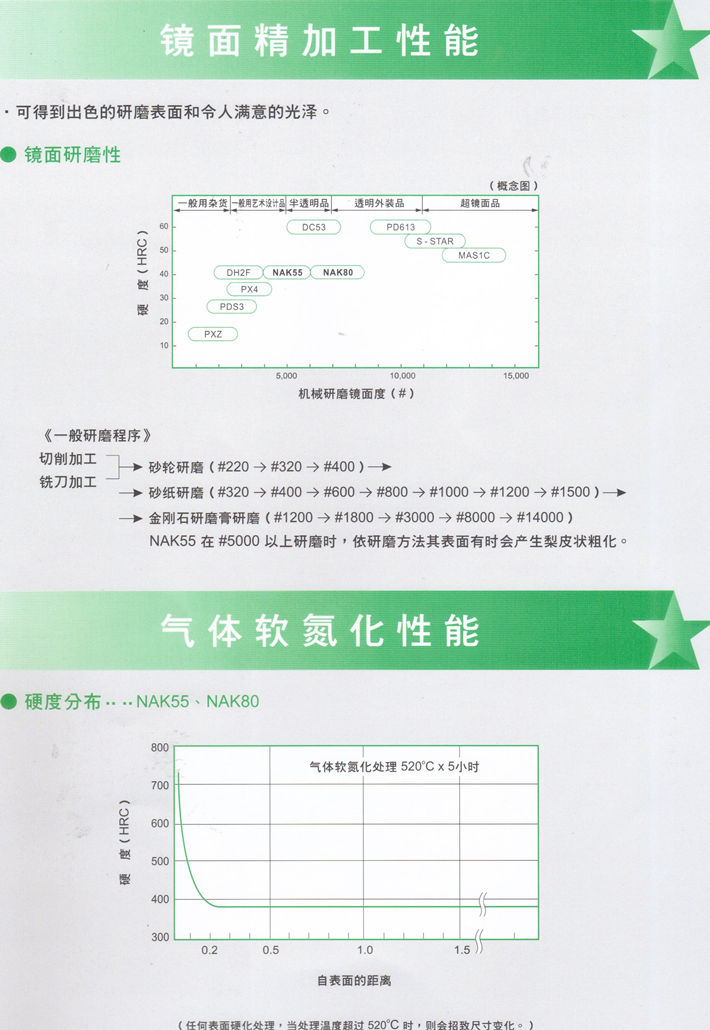 簡(jiǎn)要描述:日本大同NAK80/NAK55(高鏡面模具鋼): NAK55:易切削型40HRC級(jí)預(yù)硬鋼 NAK80:高鏡面型40HRC級(jí)預(yù)硬鋼...